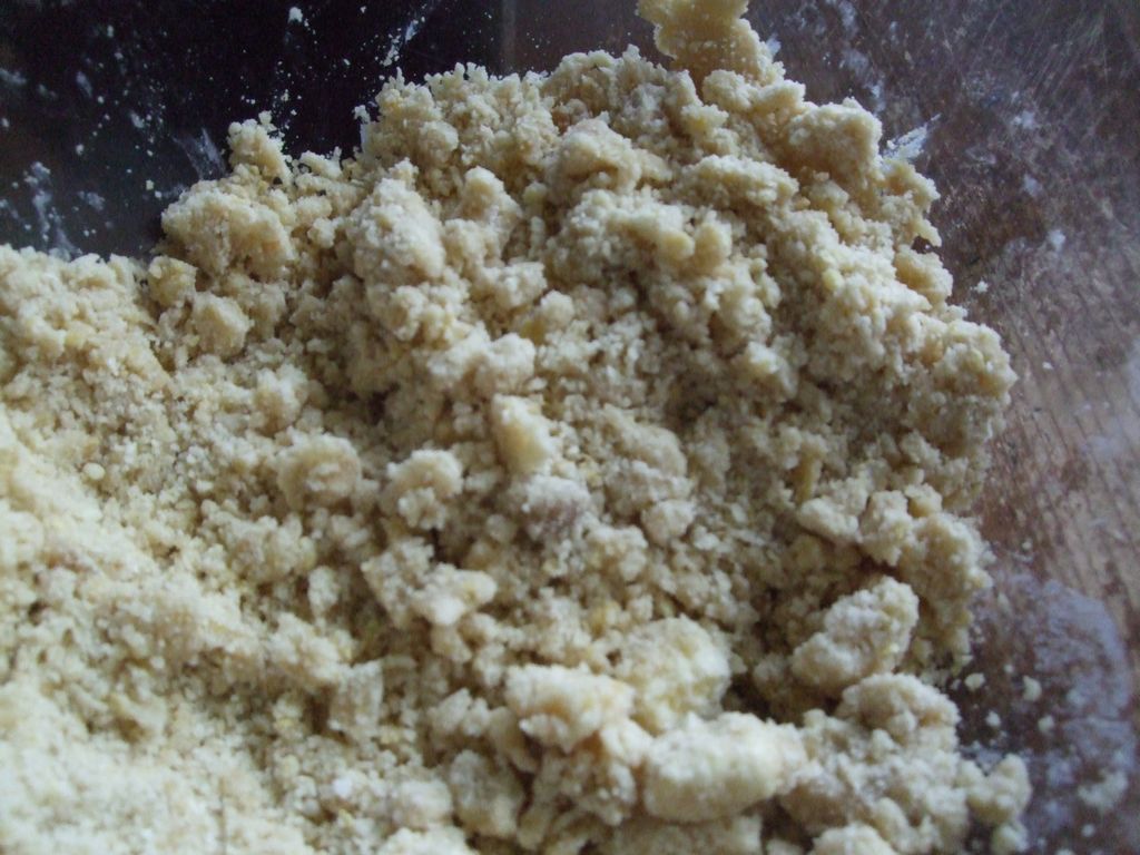 Aggiungi lo zucchero,il sale,le uova e mescola, prendendo l’impasto con le mani , cercando di formare delle grosse briciole.