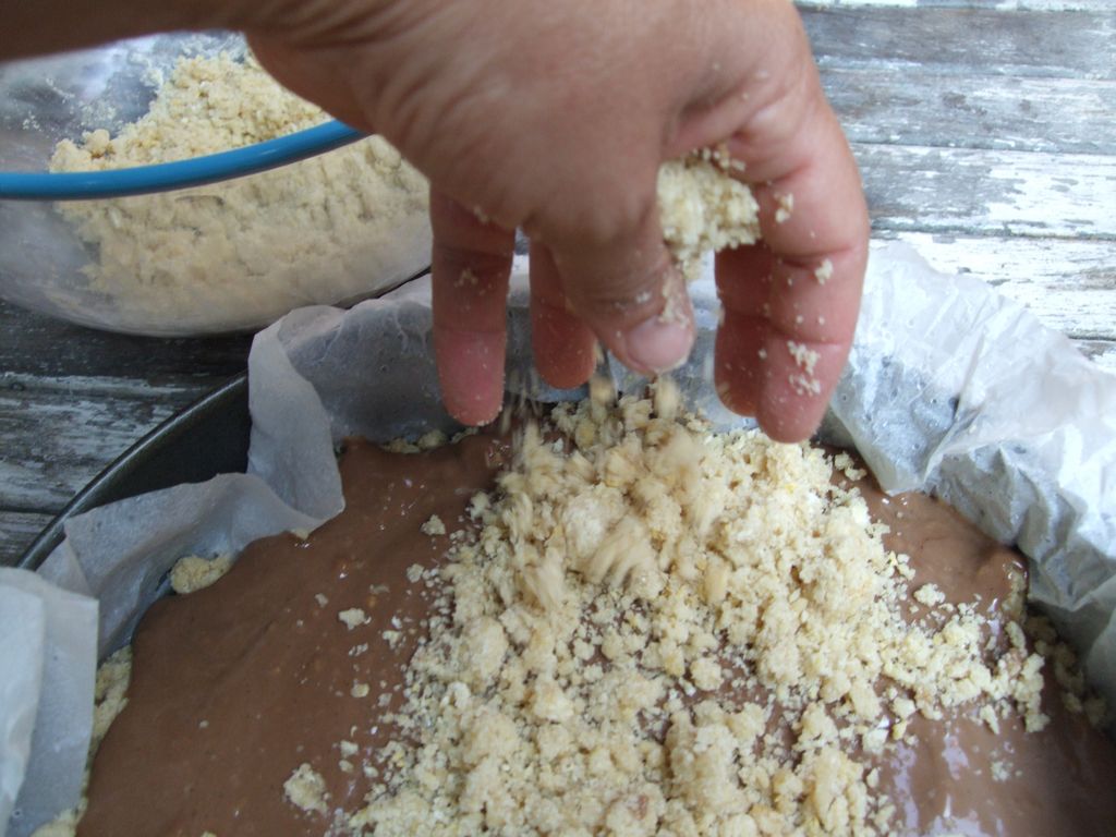 e poi sopra ancora l’altra metà delle sbriciolone…sempre sbriciolandole….