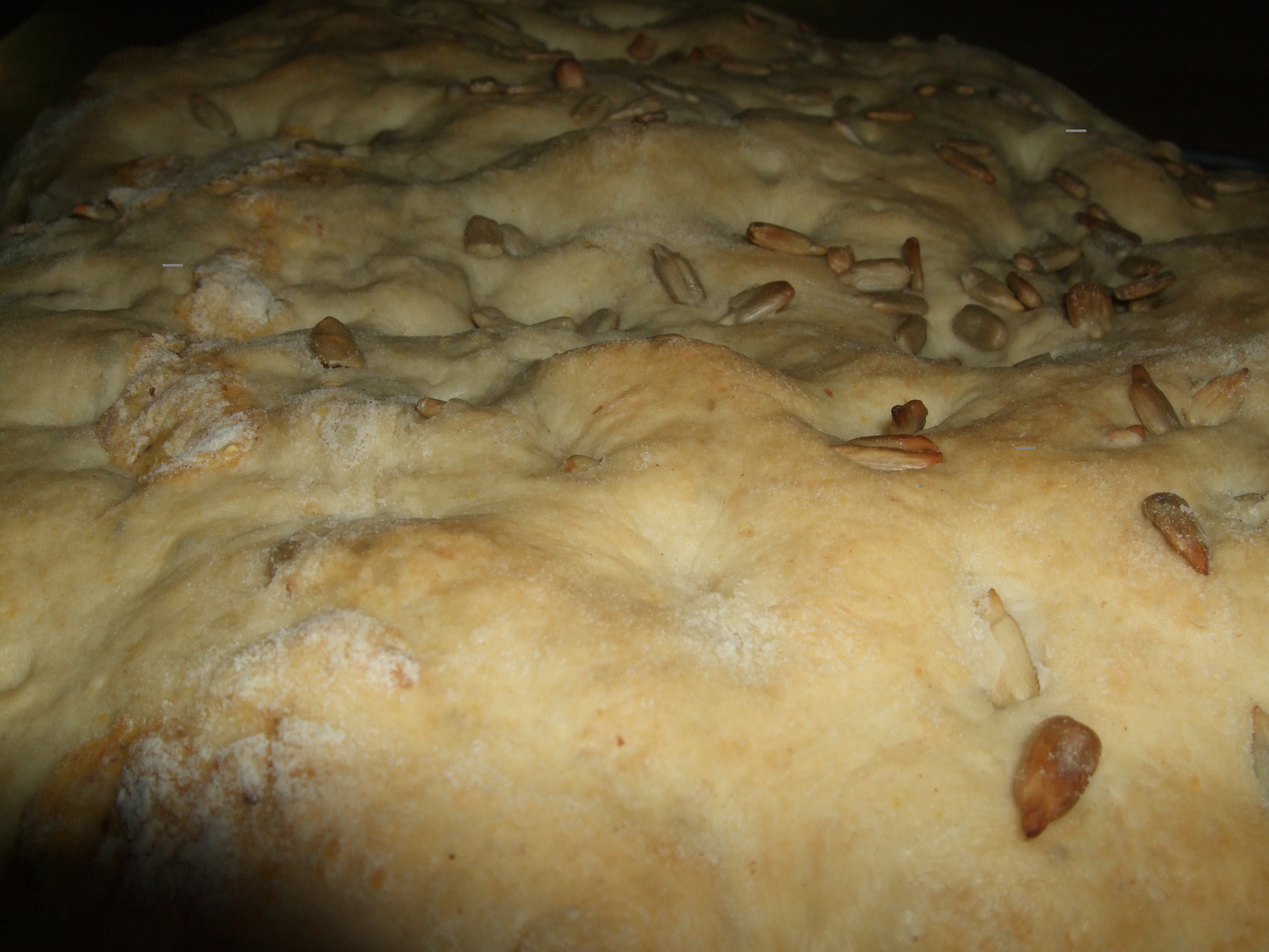 300 gr di acqua, 25 gr di lievito di birra, 400 gr di farina 0, 200 gr di farina di semola di grano duro,100 gr di olio di semi di girasole, 100 gr di semi di girasole, 1 pz di sale.