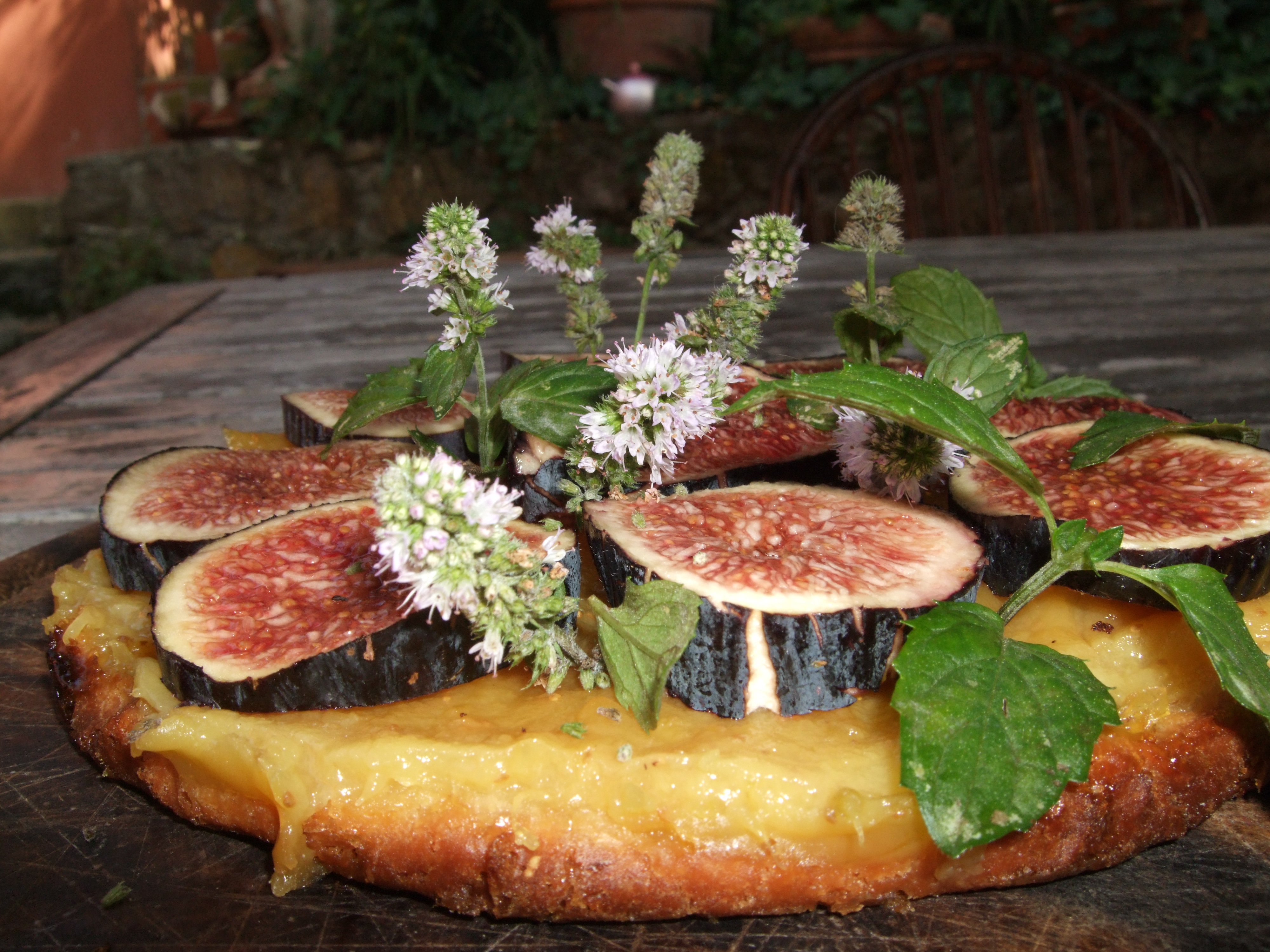 Taglia a fette i fichi e scegli le fette più belle per decorare la crostata.
