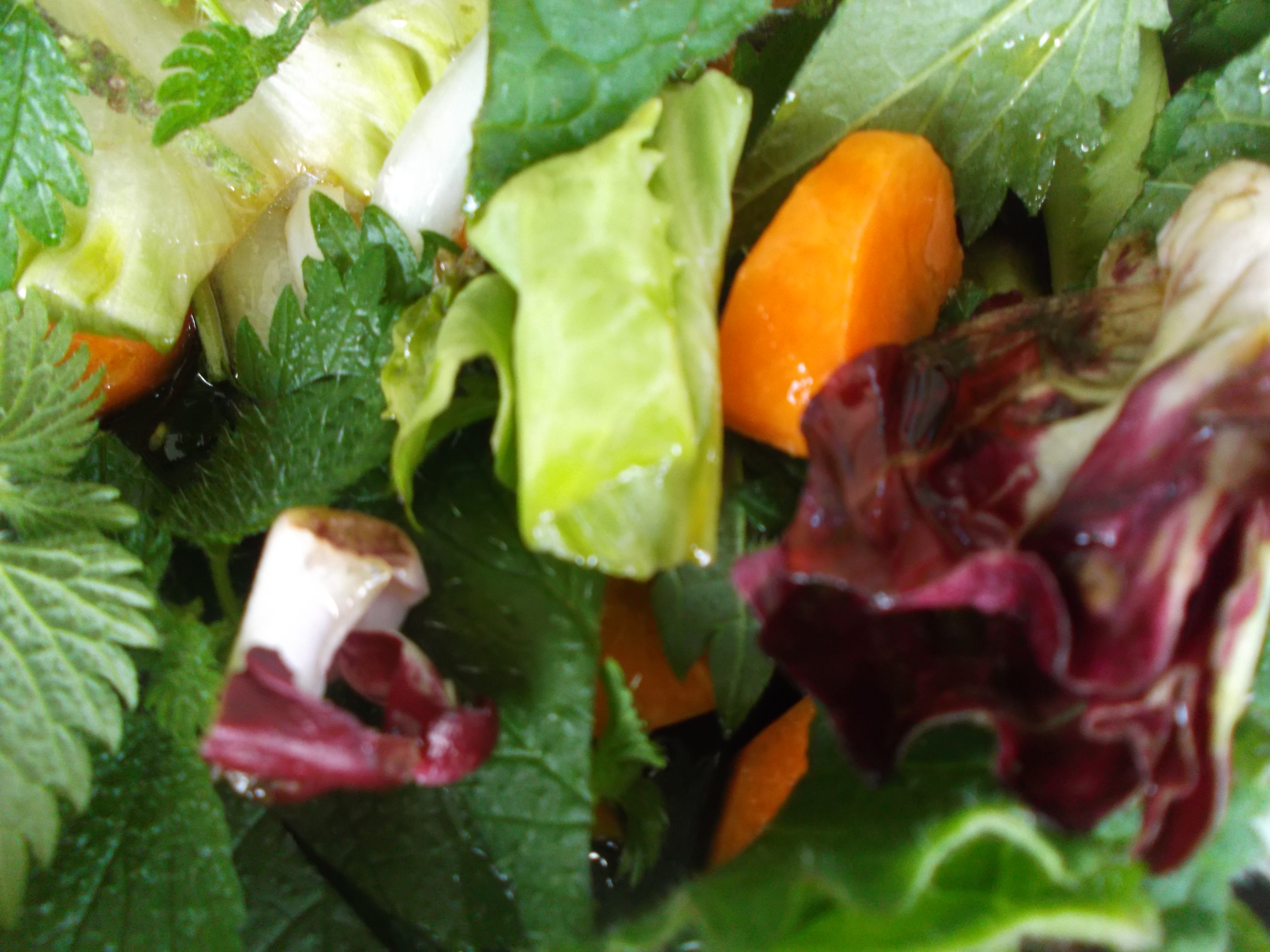 Questa frittatina è molto divertente e risolve i piccoli avanzi in frigorifero. Puoi farla con solo verdure o con affettati e formaggi. Di base non dovrebbe mai mancare la cipolla, per lo meno per i miei gusti.  Io avevo una carota, ½ cipolla, una manciata di insalata, un piccolo pezzo di caciotta affumicata ho aggiunto qualche foglia di ortica ed una  foglia di borragine.  Deve essere fatta monoporzione, cioè una alla volta.