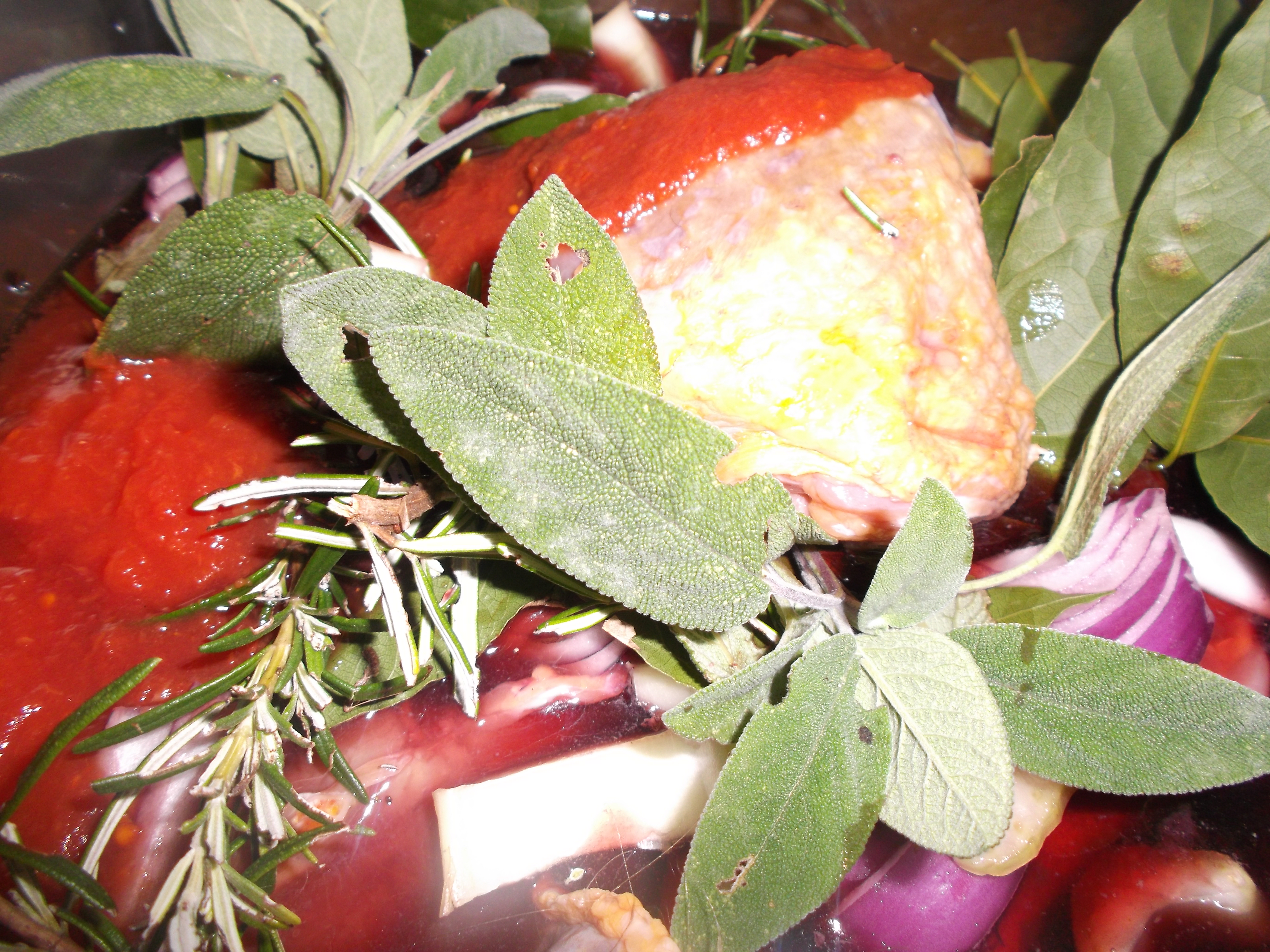 In una ciotola capiente metti il vino, il pomodoro la faraona a pezzi e tutte le verdure tagliate grossolanamente e tieni in infusione per minimo 4 ore, io la preparo il giorno prima e metto in frigorifero.