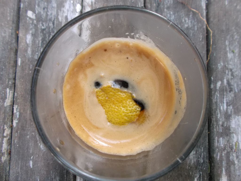 Riempi mezzo “gottino” con il rum ,aggiungi lo zucchero e con il vapore della macchina del caffè, scalda fino a che lo zucchero si è sciolto completamente. Aggiungi il limone, scalda ancora un attimo ed infine il caffè caldissimo.