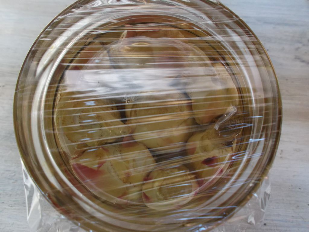 Fai asciugare per tutta la notte. Poi prendi i carciofini e mettili, sempre a testa in giu nei barattolini di vetro con la salvia il pepe e l’aglio. Riempi fino a coprirli completamente con l’olio di semi. Copri con la pellicola e controlla per qualche giorno che l’olio sia sempre sopra. A questo punto puoi togliere la pellicola e coprire i barattoli con il tappo e …sono pronti! 🙂