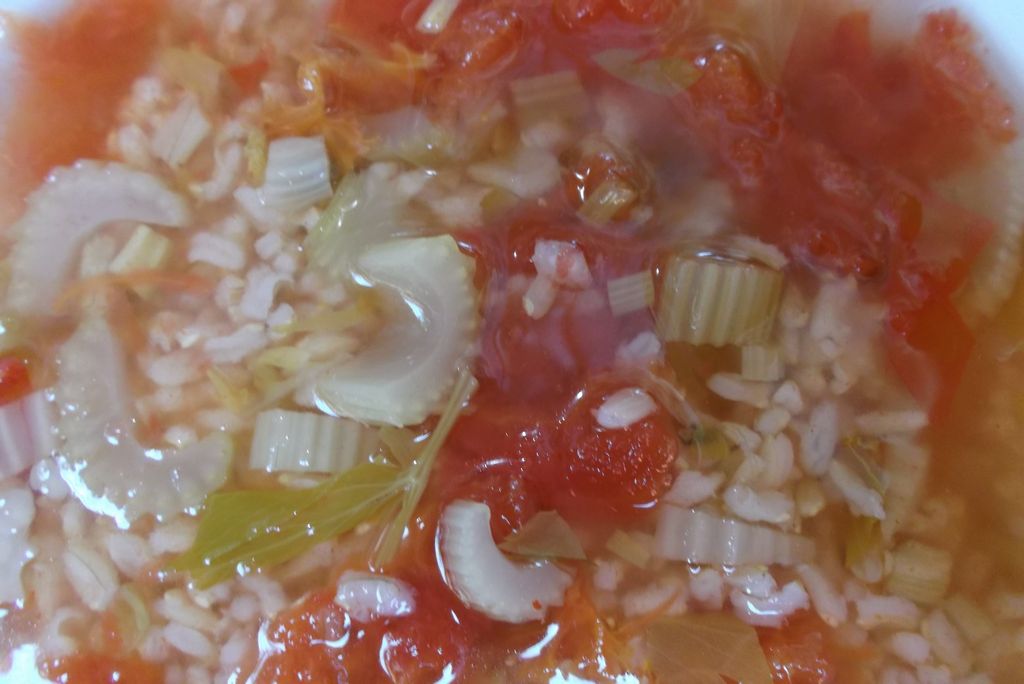 Quando le verdure sono cotte, e la minestra è sempre calda aggiungi il riso, e visto che siamo di estate lascia che raggiunga la temperatura ambiente.