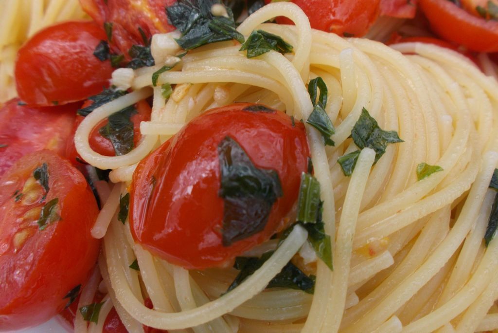 - 300 gr di pomodori ciliegini belli maturi divisi in due