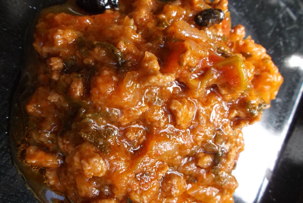 Metti il ginepro a “rinvenire” nel bicchiere di vino. Porta a bollore una pentola con l’acqua ed il sale e quando bolle butta la soia e spengi. Fai freddare e poi cola  la soia e strizzala bene. Adesso usala come se fosse macinato di carne. In una capiente pentola metti a prendere calore le verdure con l’olio, appena comincia a “sobbollire” aggiungi la soia strizzata, riporta a bollore, aggiungi il vino con il ginepro e fai evaporare 5 minuti. Adesso aggiungi il pomodoro e appena riprende  il bollore, abbassa la fiamma e vai con la pentola  “borbottante” come diceva la mia nonna ;). Cuoci minimo  1  ora ( io 3 ore) ed è pronta! Mi raccomando controlla che non attacchi, casomai aggiungi un po’ di acqua calda. Passato il tempo, togli l’alloro, la salvia . Come le cose “stufate” sono “sonnacchiose”  per questo anche il ragù è meglio se riposa 1 notte e lo consumi il giorno dopo. 😉