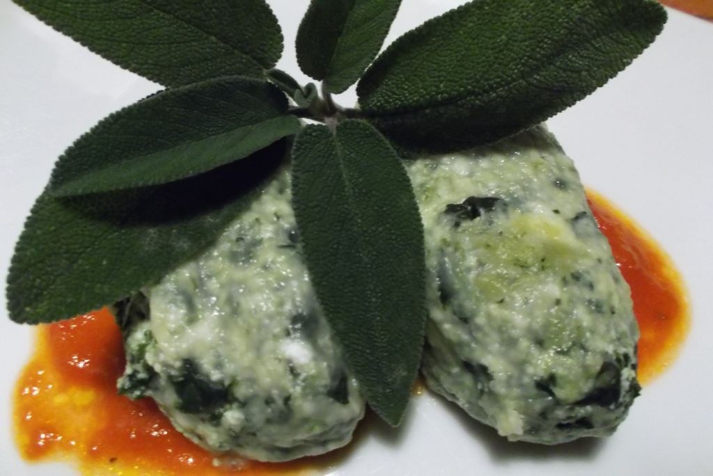Si chiamano cosi perché l’ingredienti usati per queste polpette sono molto simili al ripieno dei ravioli. In questo caso la pasta rappresenterebbe il vestito, allora se il vestito non c’è….sono “gnudi” ! 😉