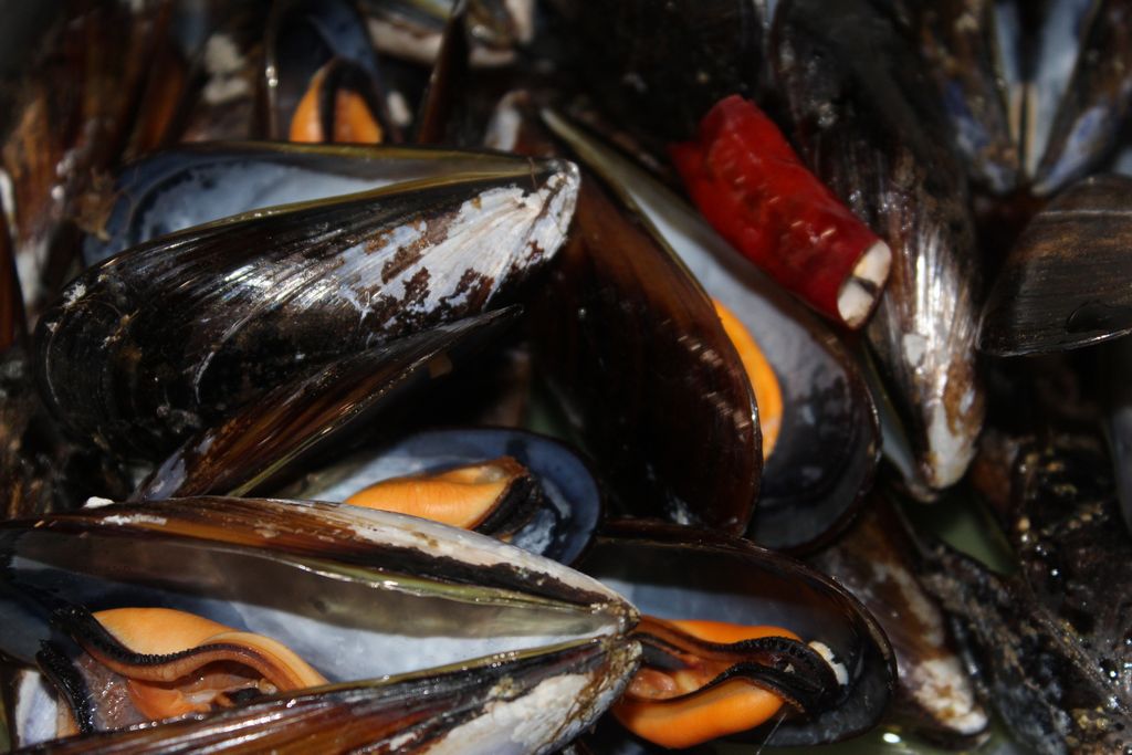 Pulisci i datteri e mettili a cuocere in una padella con l’olio e il peperoncino. Quando sono tutti aperti, toglili con una schiumarola e sistemali in una scodella.